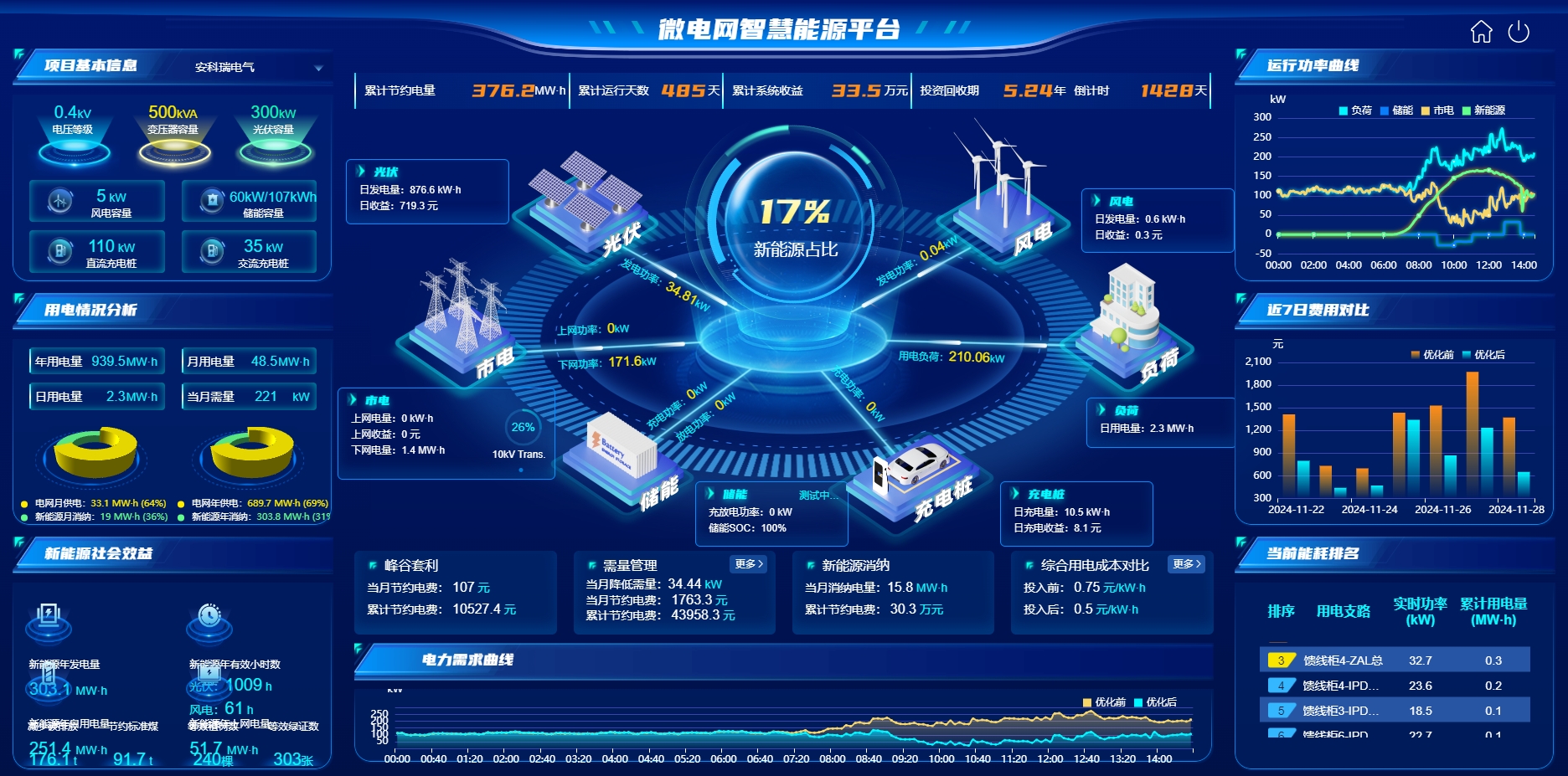 能耗分析功能包括了能耗概況、能耗同比、能耗環比...